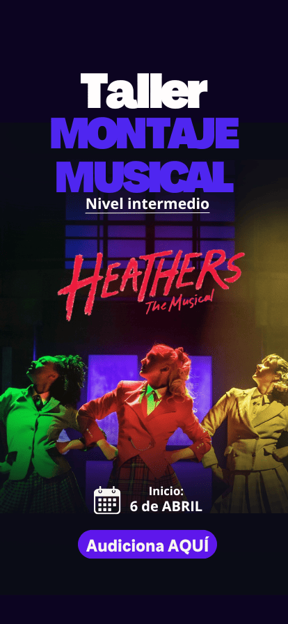 En esta edición trabajaremos Heathers, una historia con conflicto, humor oscuro y carga emocional que exige combinar textos rápidos y escenas que cambian de tono constantemente. Interpretar esta historia significa afinar tu dicción en inglés, coordinar fraseo musical con intención dramática y sostener decisiones escénicas. Es el tipo de material que acelera tu madurez como intérprete.